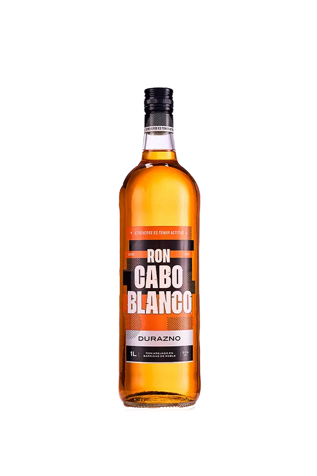 Cabo Blanco Durazno combina el clásico sabor del ron con el dulzor natural del durazno. Un trago fácil de disfrutar, con notas frutales y un final suave que lo hacen ideal para mezclar o tomar en shots.